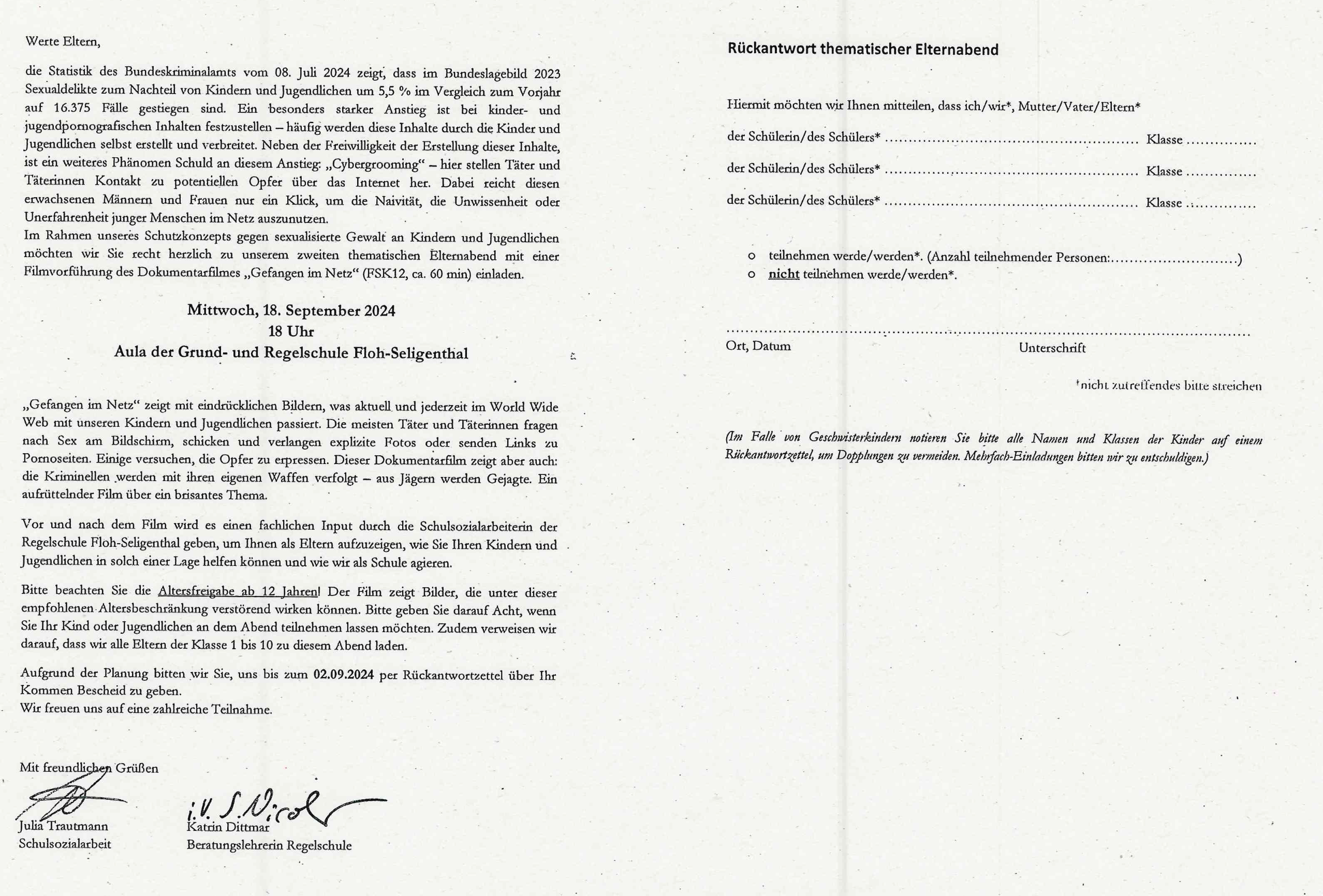 Terminverschiebung!!! SCHNUPPERTAG Regelschule Floh findet am 16.01.25 von 08.00- 12.30 statt.