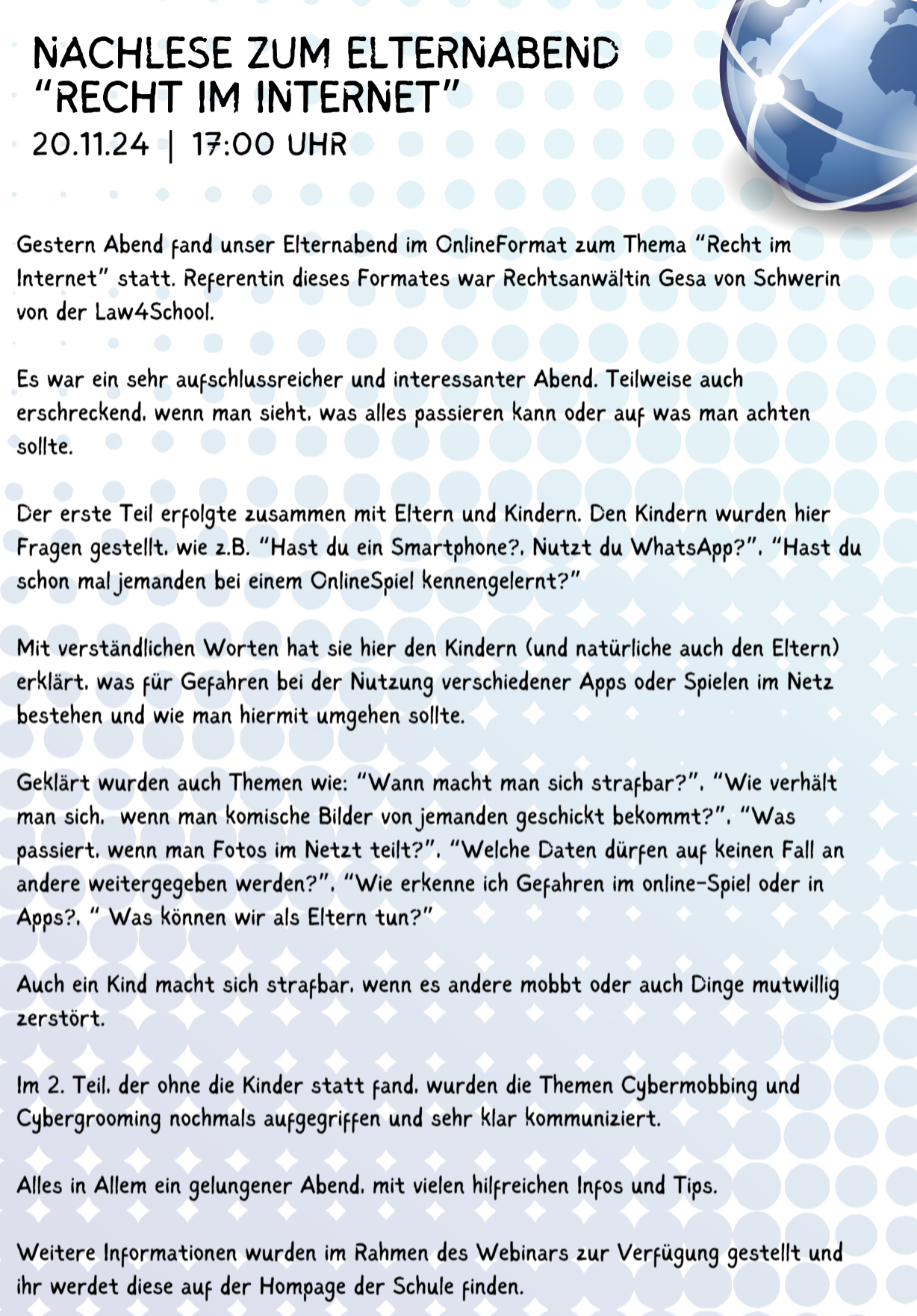 Die Fahrradausbildung wurde vom 20.08.24 auf den 23.08.24 verlegt. Weitere Informationen über die Klassenlehrer/innen!