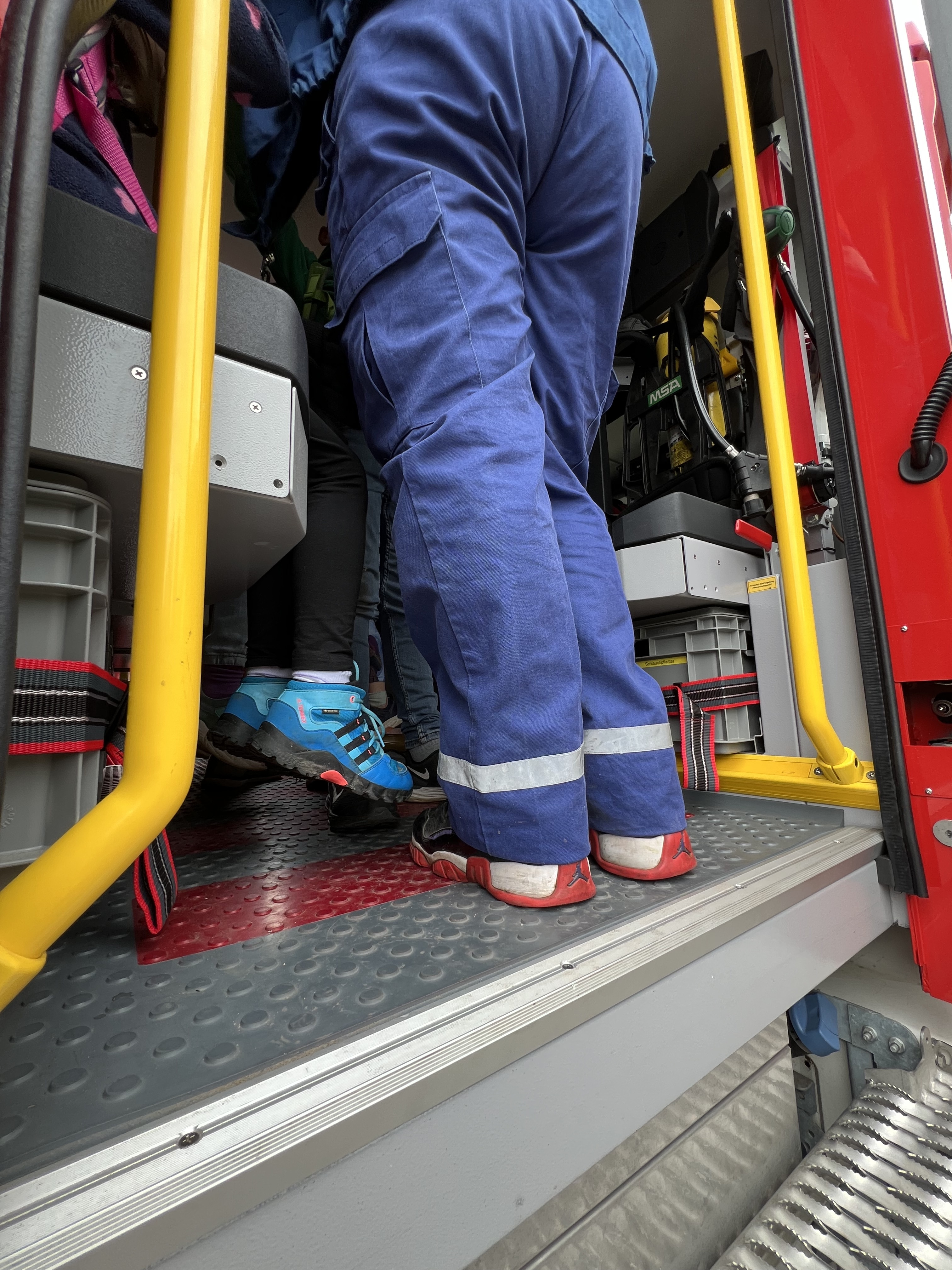 Zum Abschluss bekam jede Klasse eine Führung hoch zur Schanze. Das brachte alle außer Puste und jeder staunte über die Höhe. Im Kampfrichterturm konnten die Kinder über die ausgestellten alten und neuen Sprungskier, Pokale und Springerkleidung staunen.