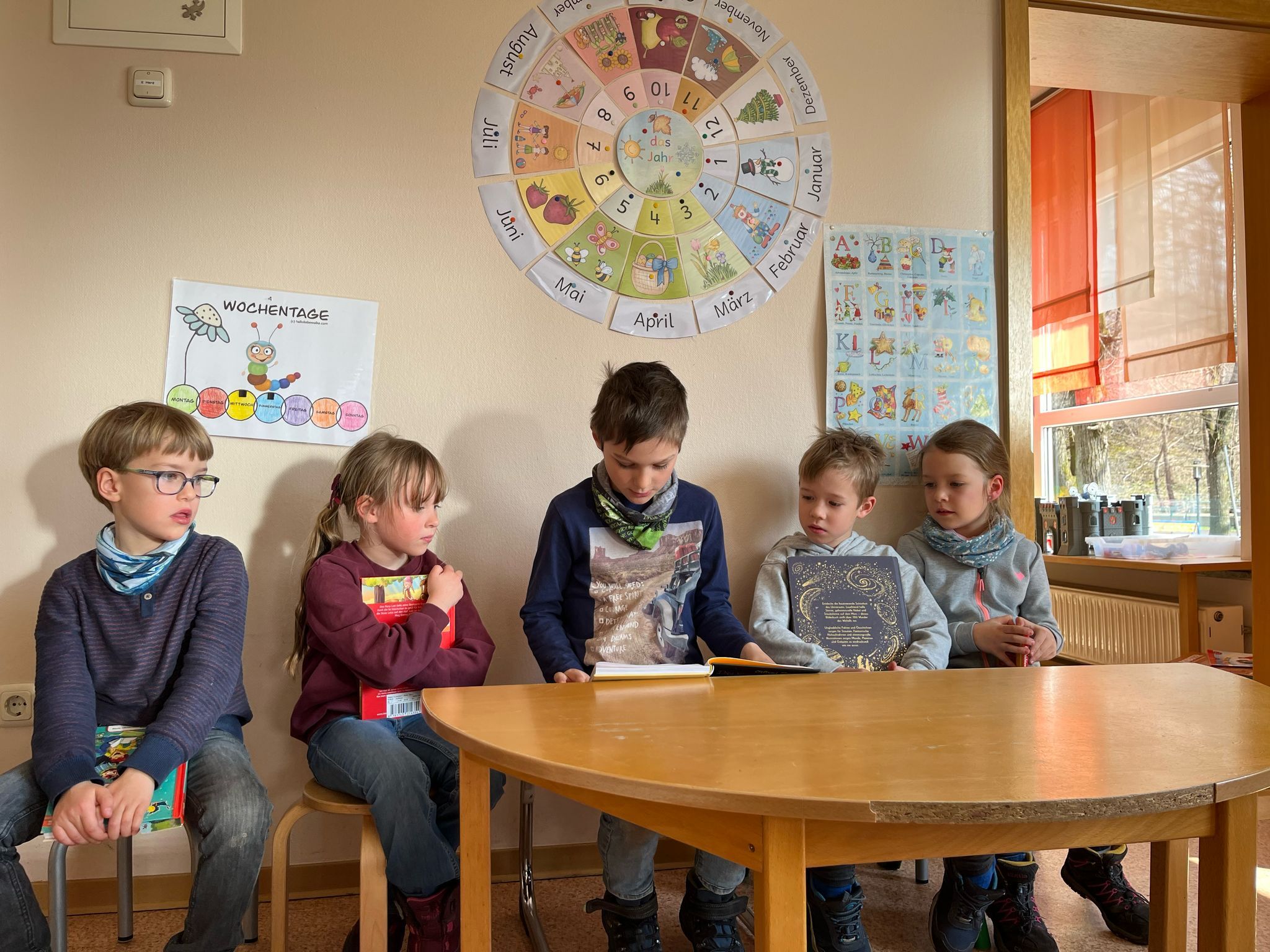 Am 1. April machten sich die besten Leser unserer Erstklässler auf den Weg in ihre ehemaligen Kindergärten in Schnellbach und Seligenthal. Dort wurden sie schon sehnsüchtig von den aufgeregten Schulanfängern erwartet. Auch die ehemaligen Erzieherinnen waren mit dabei und voller Vorfreude. Zunächst stellten die kleinen Schulprofis den Inhalt ihrer Ranzen kurz vor. Dann wurde aus einem selbstgewählten Buch ein ganzes Stück vorgelesen: Man hörte Spannendes von Gespenstern, Pferden, Prinzessinnen, Zaubertricks oder Lustiges vom Neinhorn.