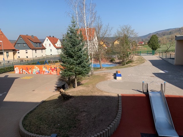 Eine große Sporthalle, unser Schulgarten und ein toller Schulhof mit Spielgeräten stehen uns zur Verfügung.